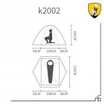 چادر یک نفره کله گاوی مدل K2002 به صورت دوپوش طراحی شده که پوش‌داخلی به صورت کلیپسی به تیرک‌ها متصل شده و پوش‌بیرونی بر روی آنها قرار گرفته و با سگک (به پوش‌داخلی) متصل می‌شود.